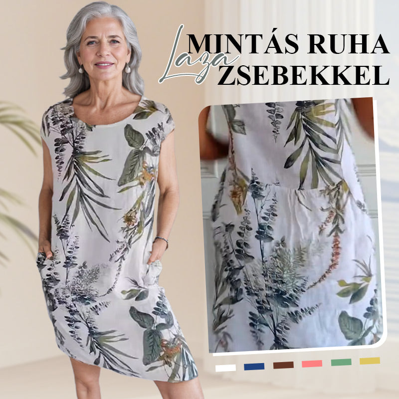 🌼Damska sukienka z okrągłym dekoltem i nadrukiem, wykonana z bawełny i lnu